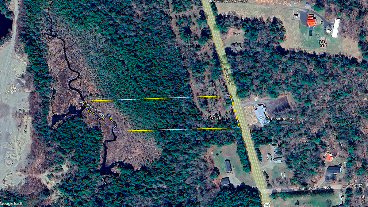 On Route 168 in Lee we have a 3.6+/- acre lot for sale!  The property has a nice driveway and building pad created!  It has been soil tested and is a buildable lot ready for you to start making plans for your future home!  The property has 200 feet of road frontage, and power is at the road.  Beaver Brook creates the western boundary of the property.  A selective harvest has been done on the lot, but the aerial photos don’t show that update yet.  The ATV trail is right down the road for you to enjoy exploring the area!  There are many recreational opportunities in the area with ATV and snowmobile trails, Silver Lake and many other bodies of water nearby for your watersport enjoyment, wildlife viewing and hunting opportunities, Mount Jefferson Ski Area just a mile and a half away, etc.  A convenience store and gas station are right in town, and Lincoln is just 20 minutes away for hospital, Walmart, grocery stores, restaurants, etc.  Don’t miss out on the opportunity to enjoy being in a rural community where you can enjoy being away from the hustle and bustle and appreciate the beautiful creation around you!